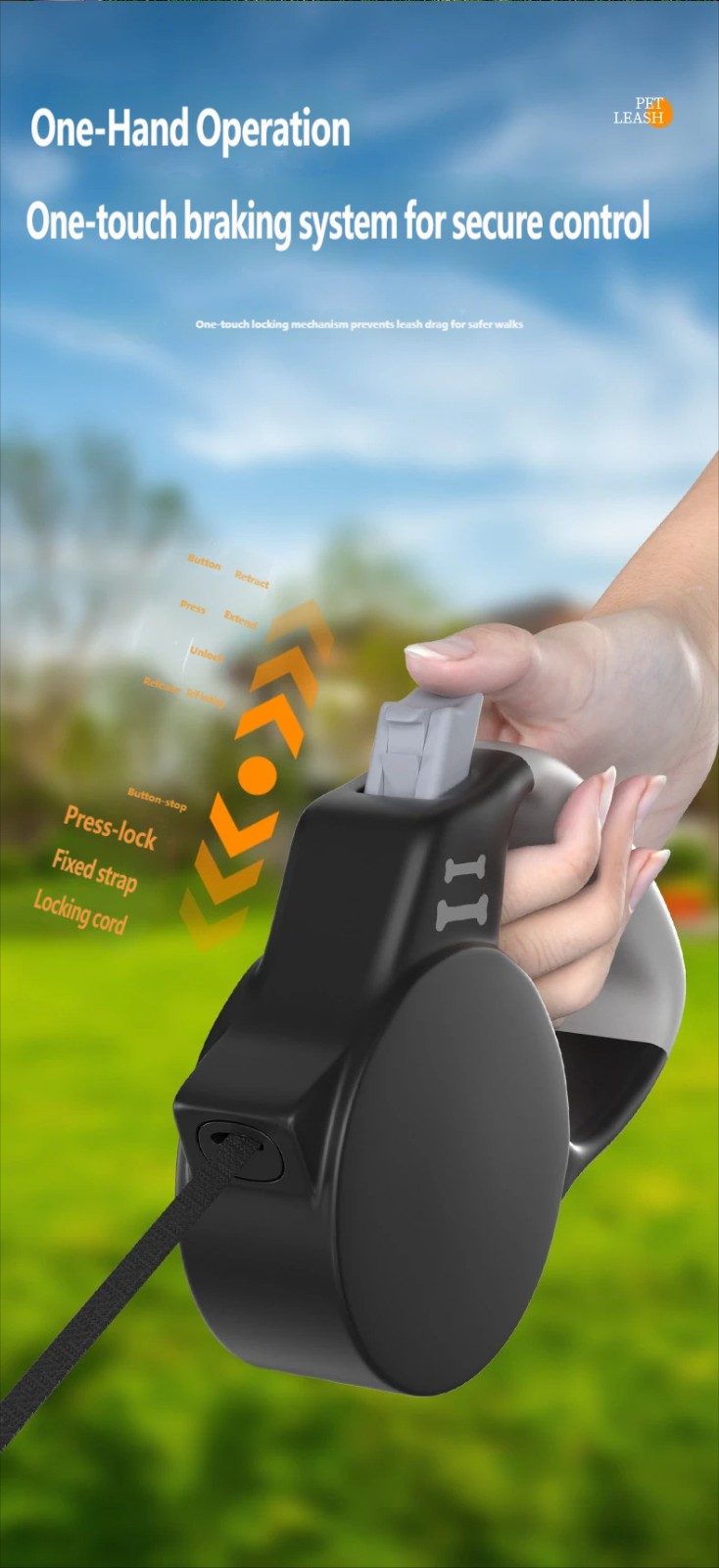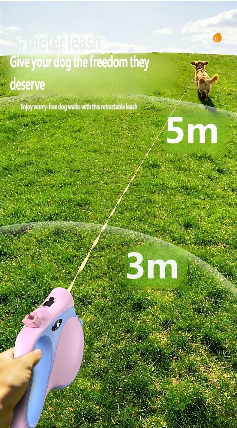 Automatic extension and retraction of the dog leash
