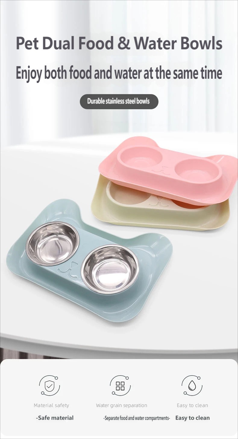 Double-bowl integrated pet feeding set