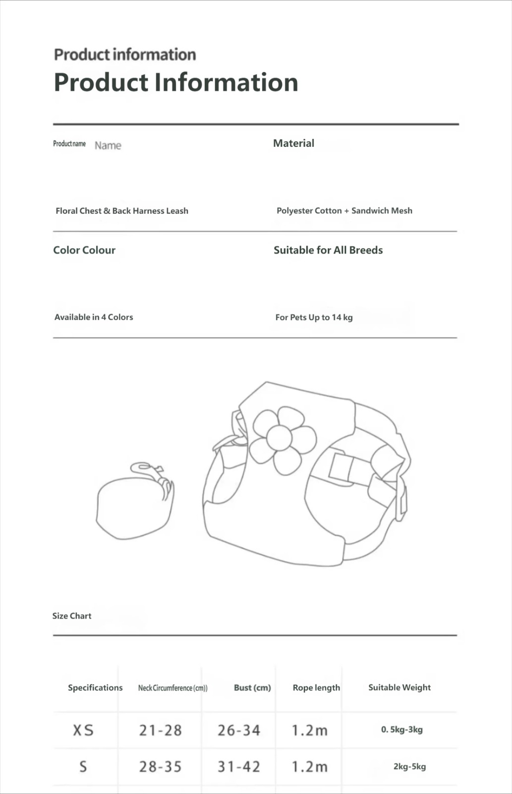 Cat leash pet chest and back harness back cover style